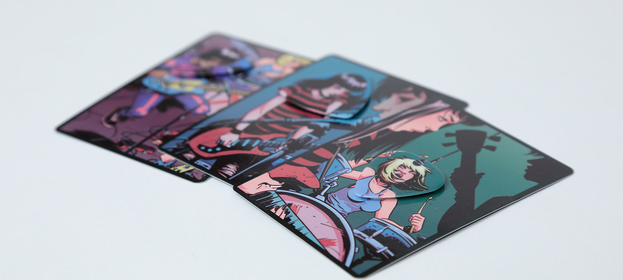 ギターを弾かない人にもお手軽なお土産として、ピックをギフト仕立てにすることで、まるでポストカード(絵葉書)のようなお土産になるのでは?と考えて、日本独自のオリジナルのイラストを施した『おみやげピック』として製品化しました。