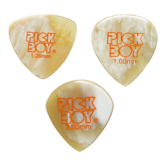 PICKBOY® guitar picks are made from a variety of materials, from basic, high-quality celluloid to new materials such as our original Celtex material, nylon, ceramic, polyacetal, and carbon graphite, as well as natural materials such as horn, bone, exotic wood, and semi-precious stones, and are chosen by many guitar players who want to create their own unique sound.