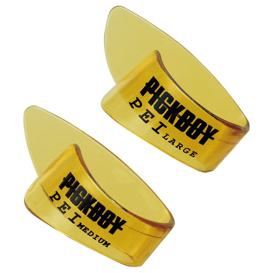 Thumb picks and finger picks are special types of picks that are worn on the thumb or fingertip.